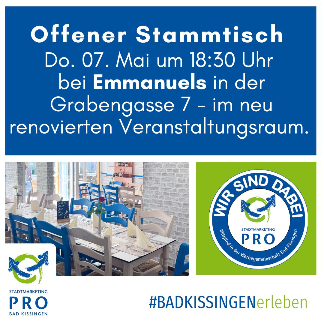 Unser Stammtisch am 17. März 2026 in den Räumlichkeiten der Famiglia D’Agostino in Bad Kissingen war ein voller Erfolg. Zahlreiche Mitglieder von Stadtmarketing PRO Bad Kissingen sind der Einladung gefolgt weiterlesen